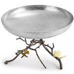 Восхитительная ваза для фруктов - это не просто предмет сервировки, а настоящее произведение искусства, которое наполнит ваш дом очарованием цветов. Ее отличают необычность стиля, использование природных мотивов и полностью ручная работа мастеров по металлу. Ваза изготовлена из текстурированной вручную нержавеющей стали и прекрасно подойдет как для фруктов или конфет, так и в качестве украшения интерьера. Ее ножки выполнены в виде переплетенных ветвей из окисленной латуни с блестящими бронзовыми листьями в форме бабочек. Вариации в отделке продукта характерны для особенностей ручной работы, благодаря чему каждое изделие является уникальным.