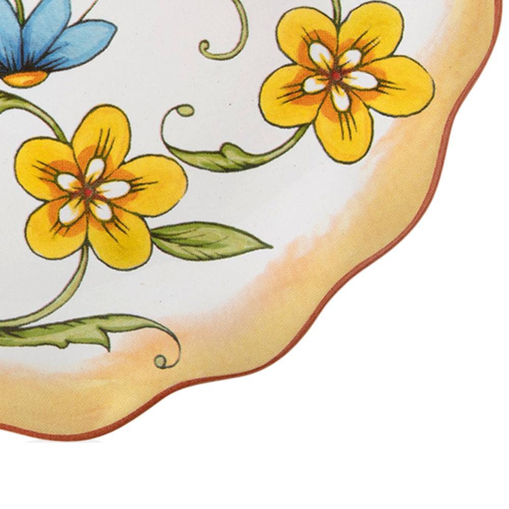 Красочная тарелка из коллекции Торино из первоклассной керамики с износостойким глазурованным покрытием. Тарелка расписана вручную в уникальной авторской технике. Неповторимый декор посуды Торино идеально впишется в торжественную сервировку и украсит собой уютное повседневное застолье.