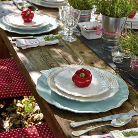 Изящная коллекция столовой посуды Alentejo способна внести в сервировку стола неоспоримый шарм и роскошь. Каждый предмет коллекции украшен небольшим изображением оливковой ветви, которая красиво и нежно дополняет волнистые края посуды. Коллекция выполнена в белом, желтом и бледно-голубом цветах, комбинируя которые вы сможете создать поистине безупречный ансамбль на вашем столе. Покрытая глазурью посуда, создает слабое теплое сияние, наполняя атмосферу уютом и романтикой. В коллекцию вошли все самые необходимые предметы сервировки, включая тарелки, блюда и чаши различных объемов. Посуда имеет нарядный вид, и, вместе с тем, отличается хорошими практичными качествами: все предметы кухонной утвари коллекции Alentejo подходят для приготовления блюд в микроволновой печи, духовом шкафу и мытья в посудомоечной машине.