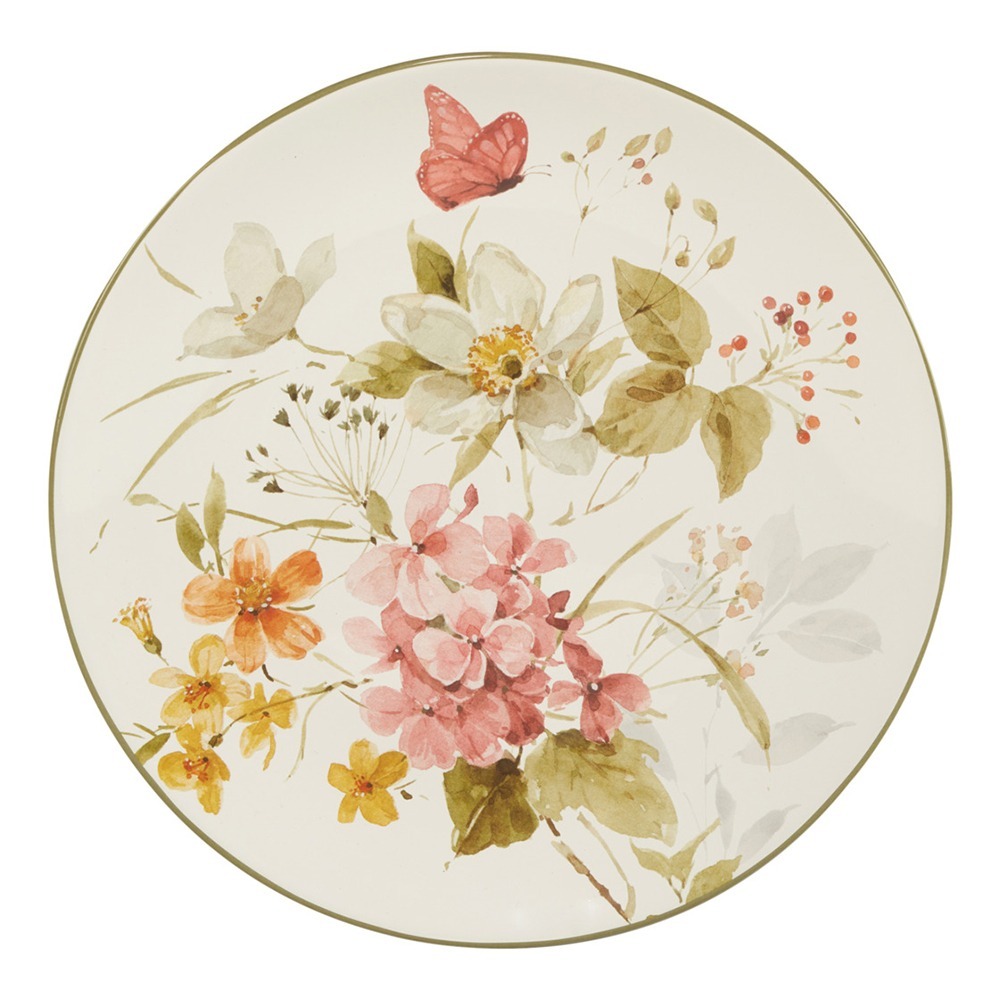 Обеденная тарелка с очаровательным декором станет отличным дополнением к сервировке праздничного стола. Она изготовлена из глазурованной керамики, которая не впитывает запахи, легко моется и обладает высочайшими эстетическими характеристиками. Можно использовать в микроволновой печи, мыть в посудомоечной машине.