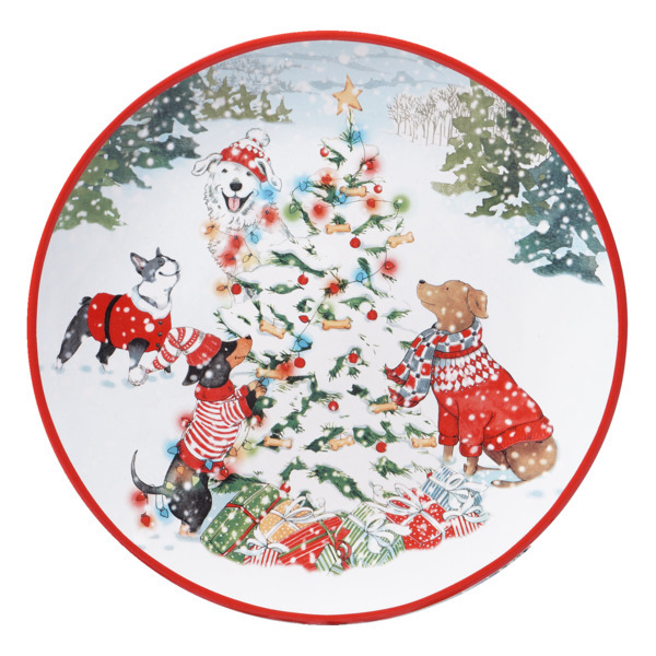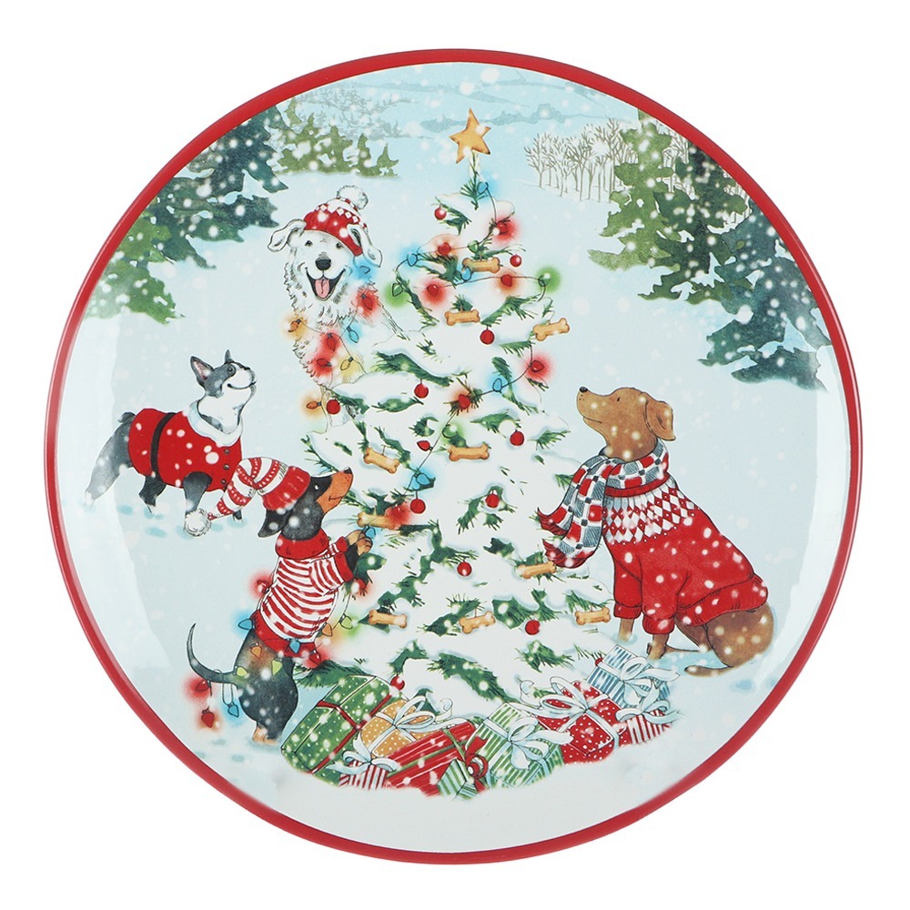 Тарелка из новогодней серии «Особый праздник» торговой марки Certified International Corp изготовлена из высококачественной керамики с прочным глазурованным покрытием. Изделие декорировано яркими изображениями авторства художницы-иллюстратора Шерри Бак Болдуин, которые придутся по душе любителям собак: на белоснежной поверхности причудливо резвятся четверолапые друзья, создавая неповторимое ощущение праздника и веселья.