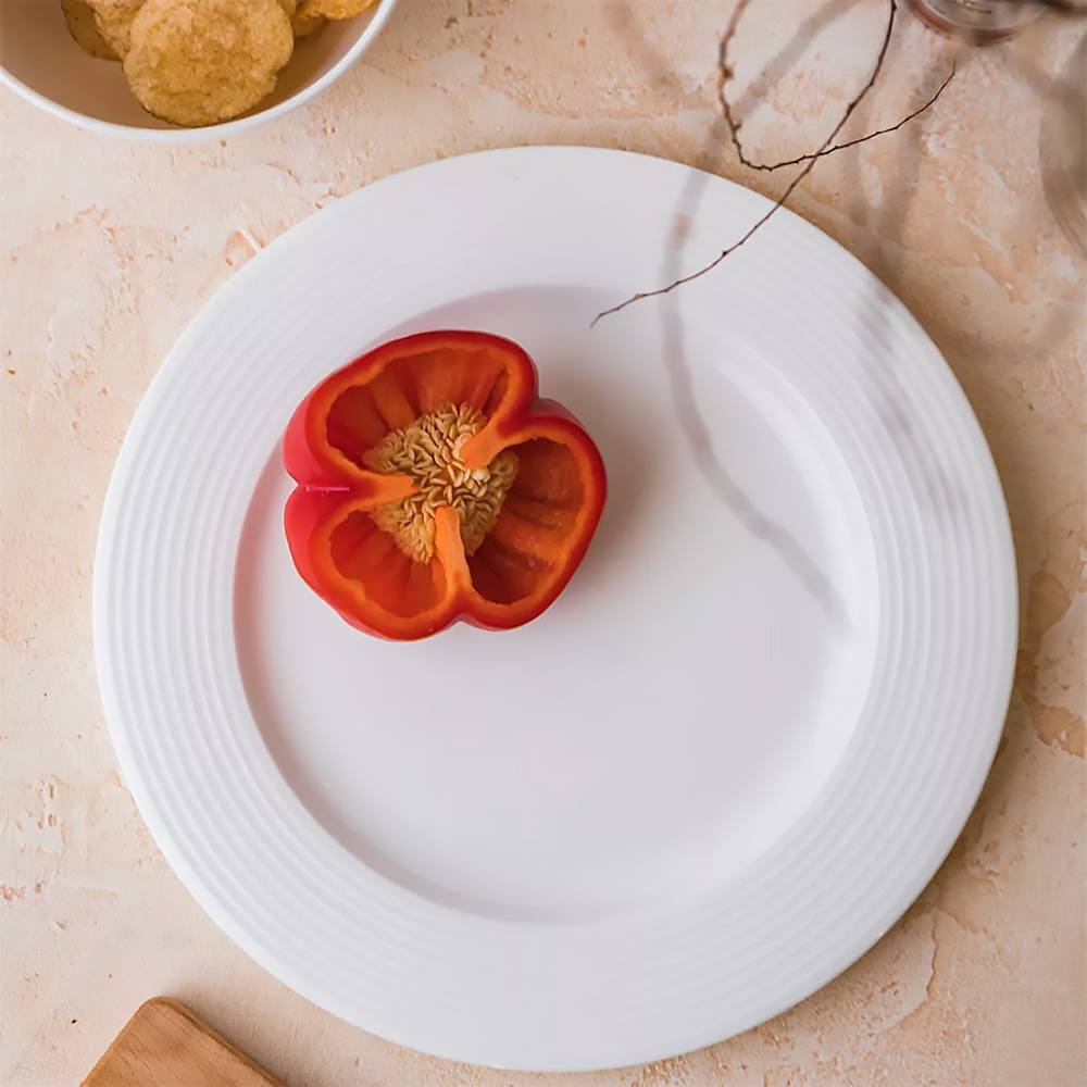 Изящная тарелка из костяного фарфора может стать превосходным фоном как для изысканных блюд высокой кухни, так и для легких домашних закусок. Она создана для отражения фантазии и вкуса будущих владельцев, которые без особых усилий смогут менять сервировку в зависимости от случая или настроения, добавив лишь несколько акцентов в виде скатерти, салфеток, бокалов или иного декора стола. Белый цвет будет радовать как во время обычного ужина в кругу семьи, так и во время воскресного обеда с близкими друзьями, а универсальная округлая форма прекрасно подойдет как к классическому, так и к современному дизайну вашего интерьера.