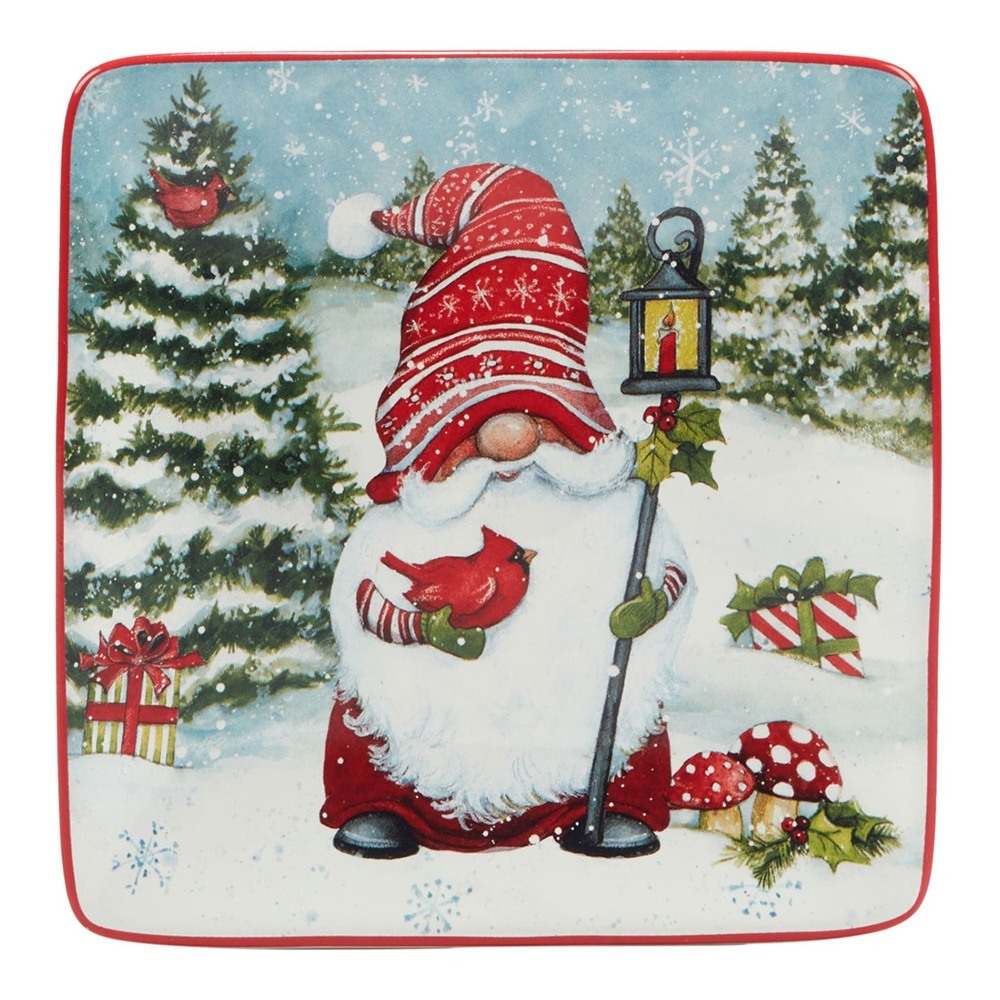 Тарелка с прекрасным зимним рисунком и смешными гномами станет отличным дополнением к сервировке праздничного стола. Посуда изготовлена из глазурованной керамики, которая не впитывает запахи, легко моется и обладает высочайшими эстетическими характеристиками. Можно использовать в микроволновой печи в режиме разогрева и мыть в посудомоечной машине.