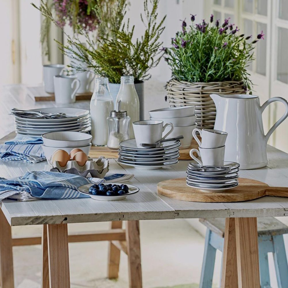 Серия Beja от компании Costa Nova включает стильную посуду и предметы сервировки, выполненные из высококачественной керамики и имеющие оригинальный современный дизайн. Предметы отличаются изящными линиями и декорированы темно-синим ободком, который символизирует архитектурный ландшафт Бежи и навевает ностальгические мысли о старинной эмалированной посуде. Лаконичный дизайн изделий придает любой сервировке изысканный, но повседневный уютный вид. Посуда из коллекции Beja пригодна для использования в духовом шкафу, микроволновой печи и морозильной камере. Предметы без труда очищаются от остатков пищи вручную или в посудомоечной машине.