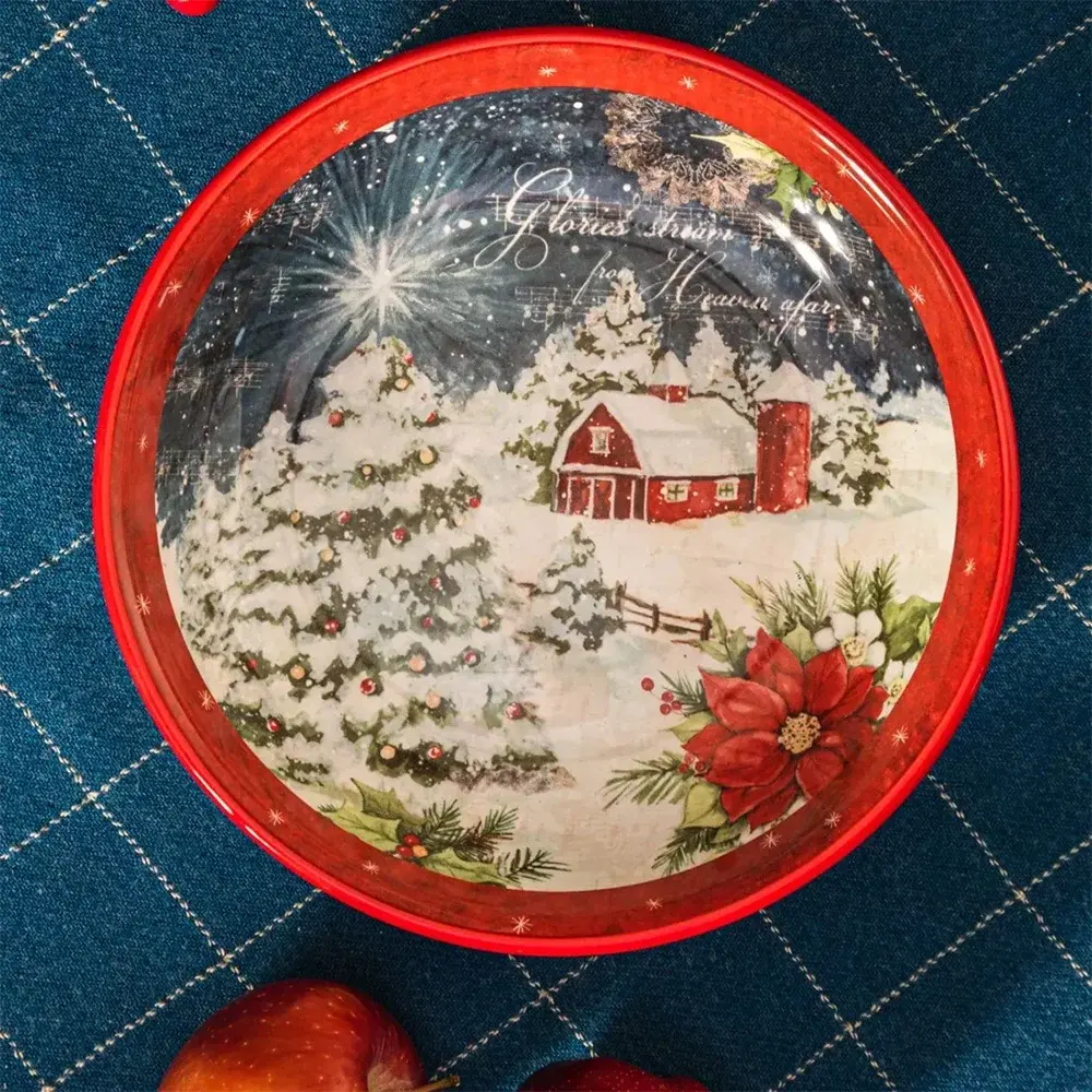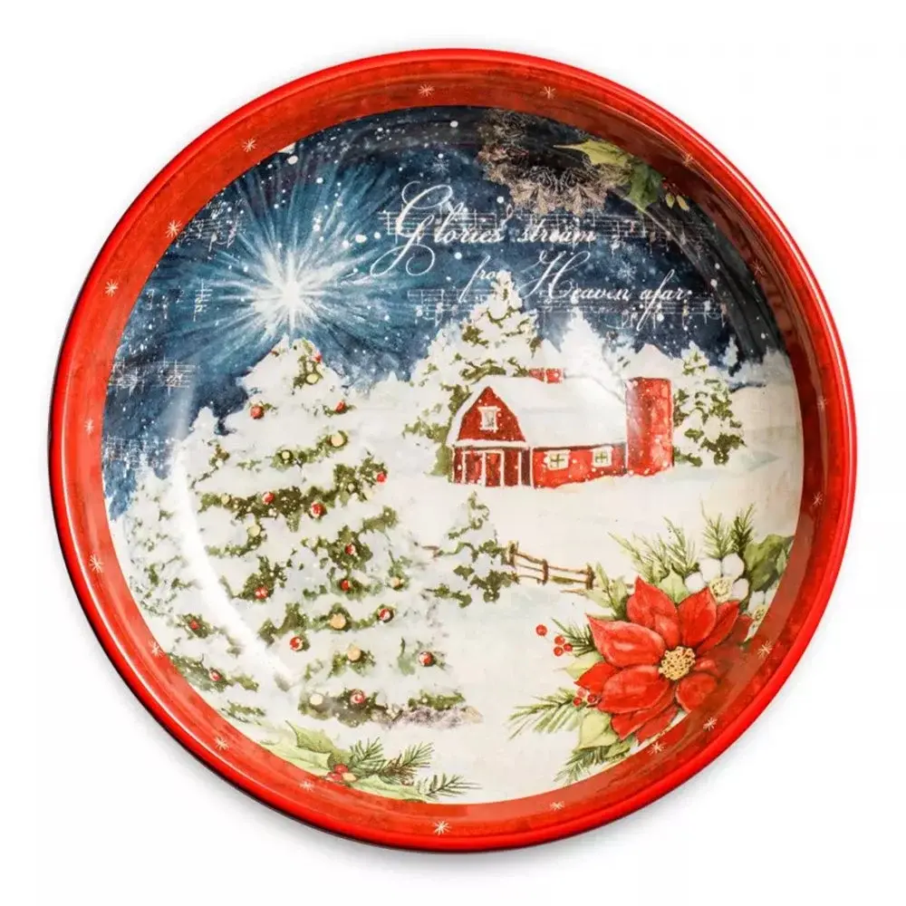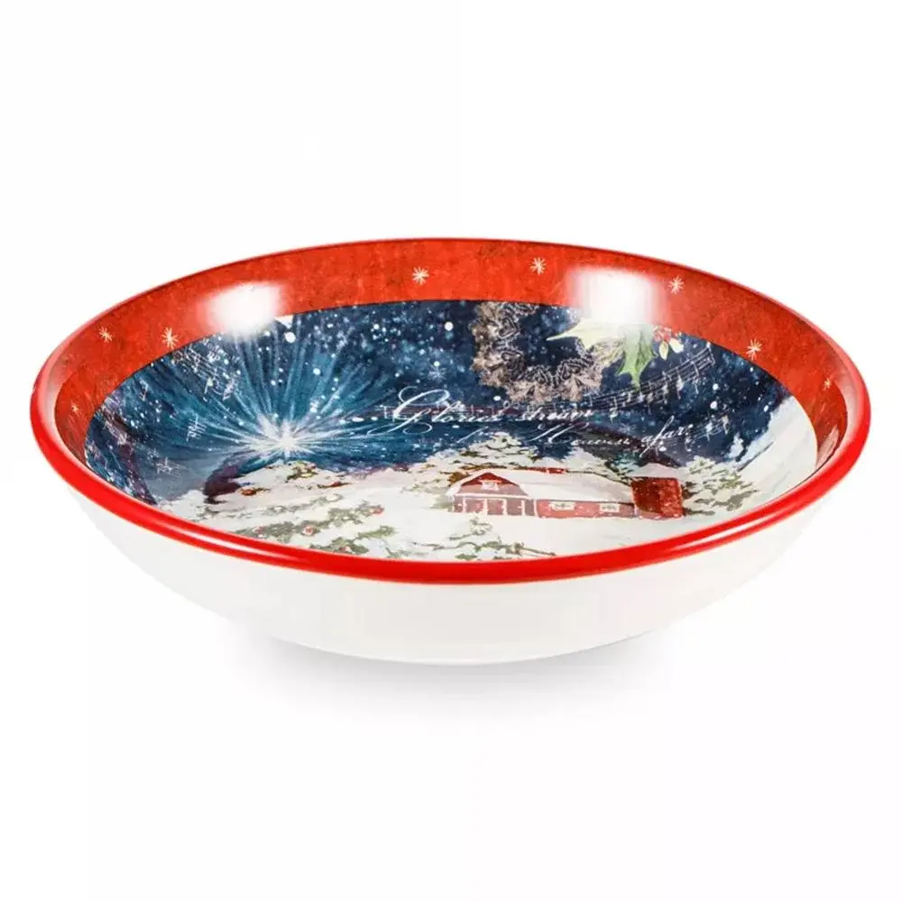 Эффектная тарелка станет отличным дополнением к сервировке, создавая особое настроение праздника в повседневной жизни. Зимний декор выполнен в оттенках синего, зеленого, красного и белого цветов с помощью красок, нанесенных под глазурь. Предметы коллекции великолепно сочетаются с однотонной посудой, удачно оттенят белую скатерть и создадут торжественную атмосферу. Можно использовать в микроволновой печи, мыть в посудомоечной машине.