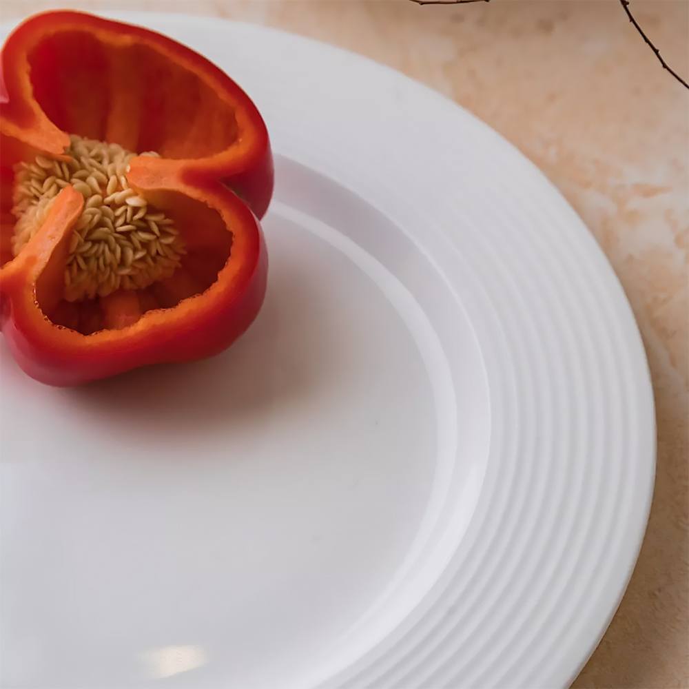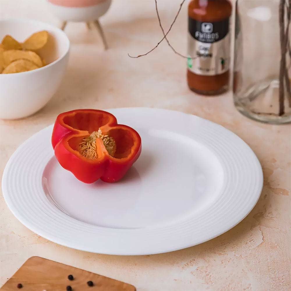 Изящная тарелка из костяного фарфора может стать превосходным фоном как для изысканных блюд высокой кухни, так и для легких домашних закусок. Она создана для отражения фантазии и вкуса будущих владельцев, которые без особых усилий смогут менять сервировку в зависимости от случая или настроения, добавив лишь несколько акцентов в виде скатерти, салфеток, бокалов или иного декора стола. Белый цвет будет радовать как во время обычного ужина в кругу семьи, так и во время воскресного обеда с близкими друзьями, а универсальная округлая форма прекрасно подойдет как к классическому, так и к современному дизайну вашего интерьера.
