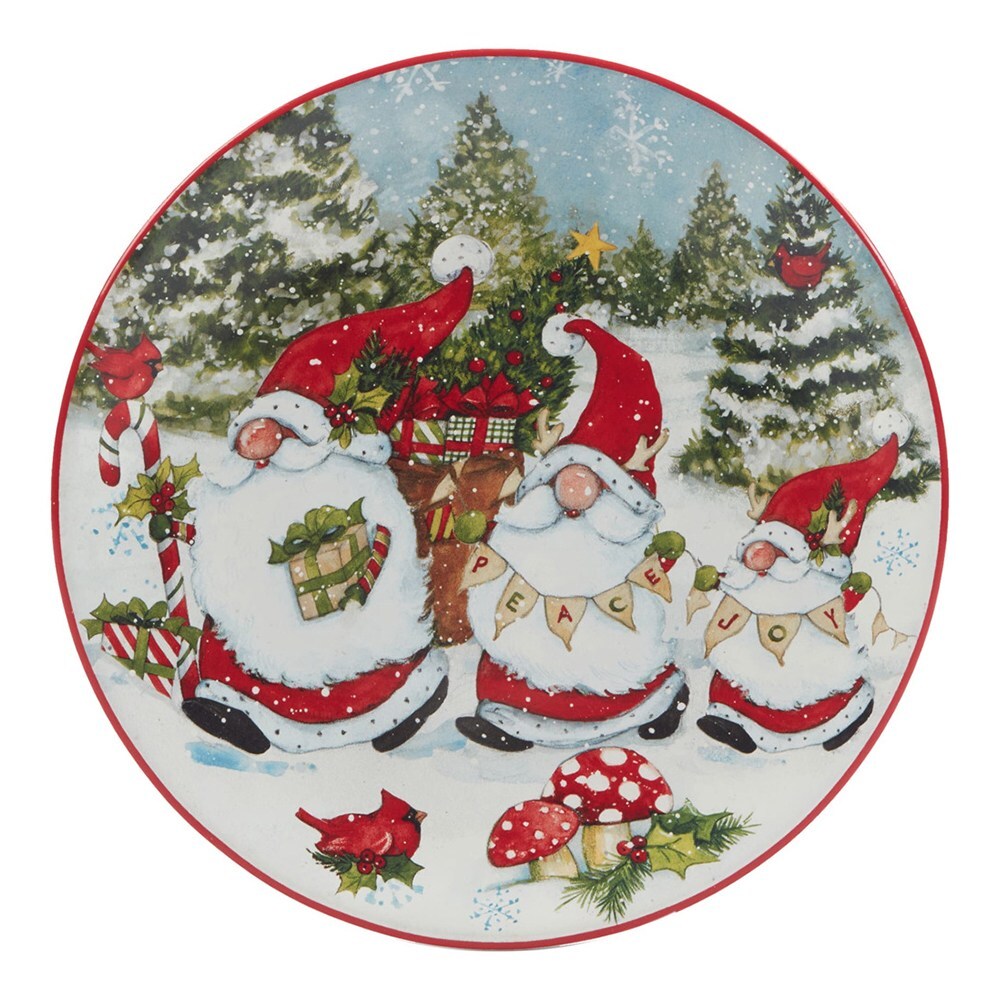 Тарелка с прекрасным зимним рисунком и смешными гномами станет отличным дополнением к сервировке праздничного стола. Посуда изготовлена из глазурованной керамики, которая не впитывает запахи, легко моется и обладает высочайшими эстетическими характеристиками. Можно использовать в микроволновой печи в режиме разогрева и мыть в посудомоечной машине.