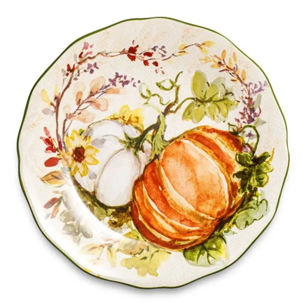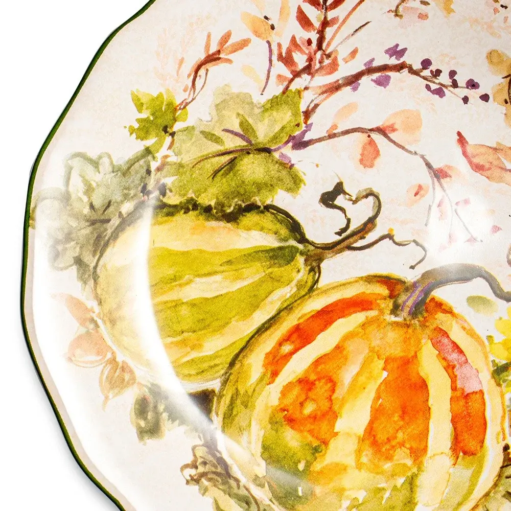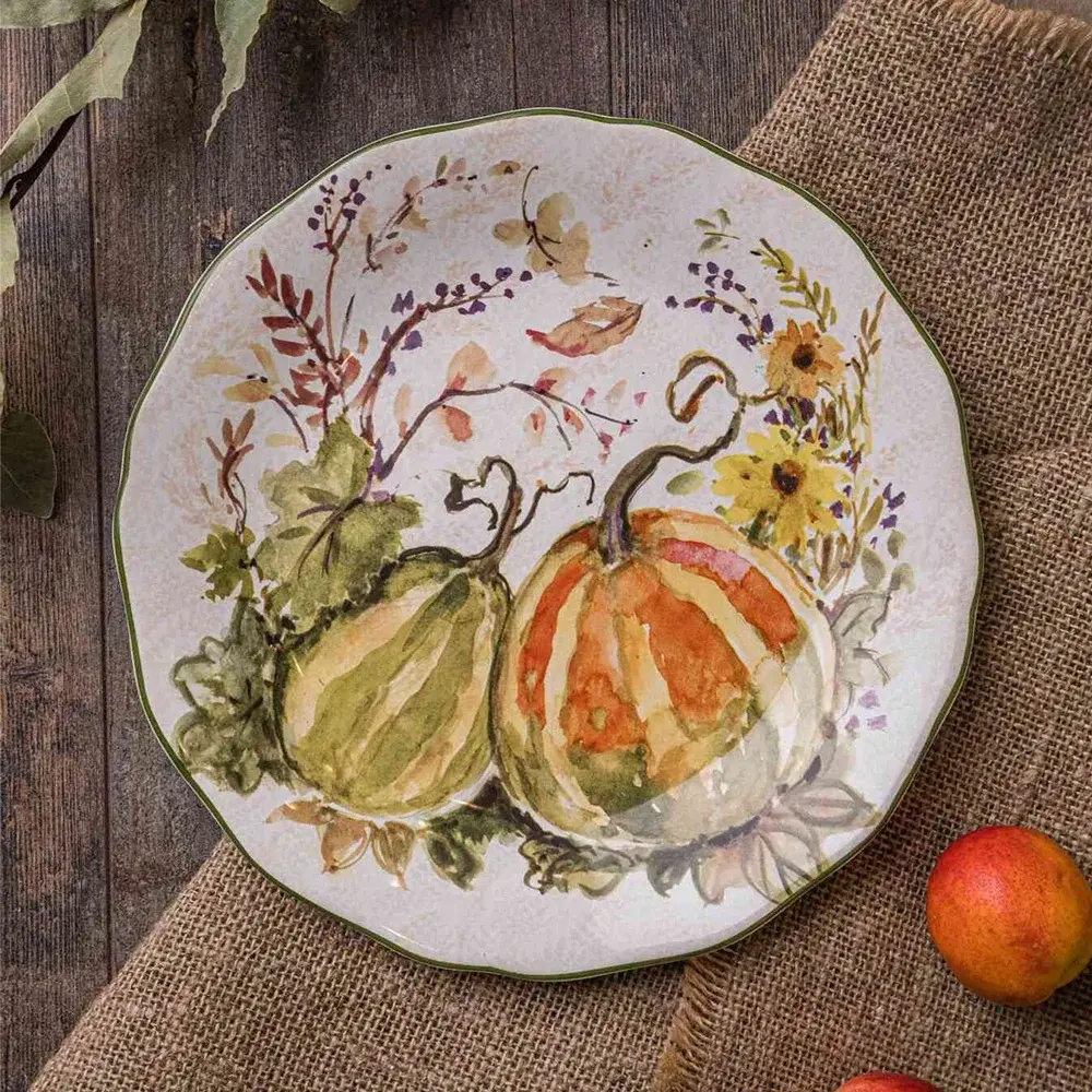 Эффектная тарелка с акварельным изображением осеннего урожая станет отличным дополнением к сервировке и подарит праздничное настроение. Глазурованная керамика двойного обжига без микропор отличается устойчивостью к сколам и трещинам, поэтому отлично подходит для ежедневного использования.