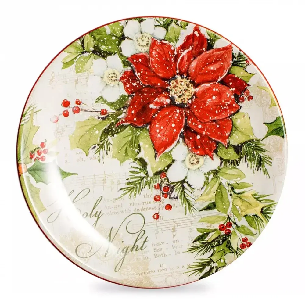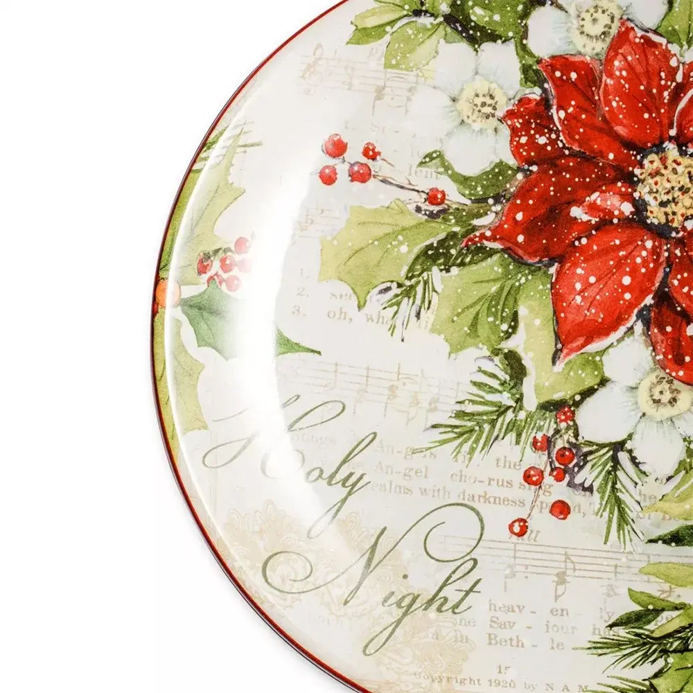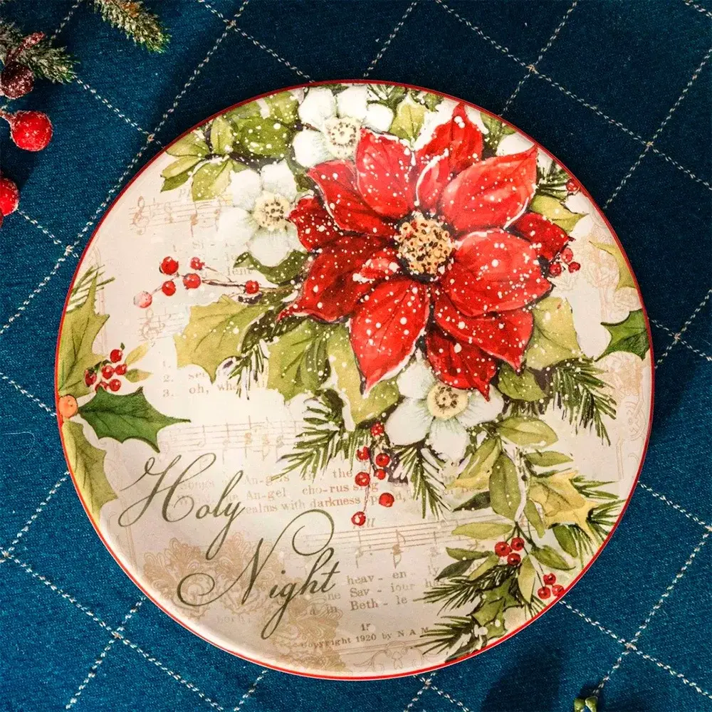 Эффектная тарелка станет отличным дополнением к сервировке, создавая особое настроение праздника в повседневной жизни. Зимний декор выполнен в оттенках зеленого, красного и белого цветов с помощью красок, нанесенных под глазурь. Предметы коллекции великолепно сочетаются с однотонной посудой, удачно оттенят белую скатерть и создадут торжественную атмосферу. Можно использовать в микроволновой печи, мыть в посудомоечной машине.